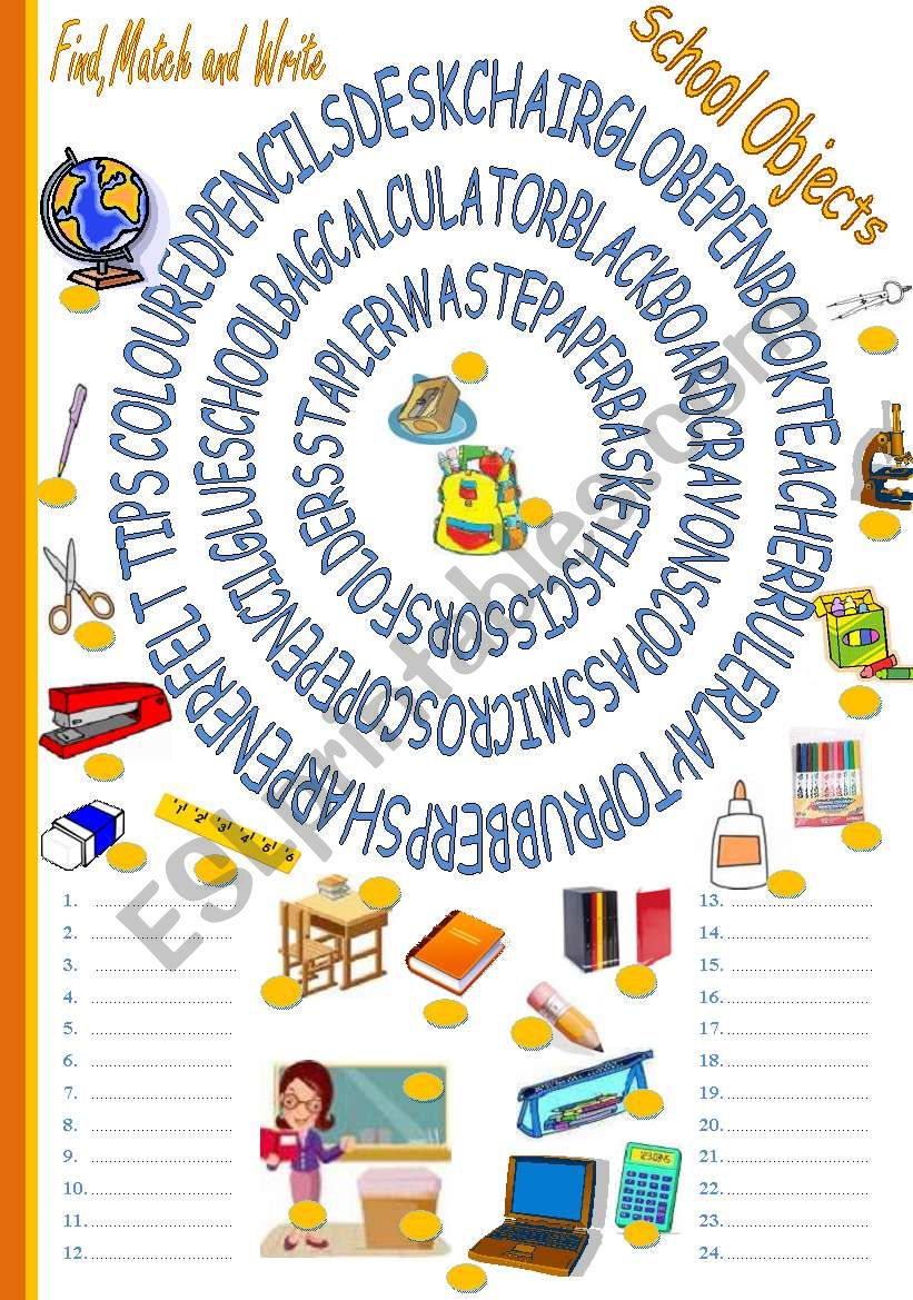 SCHOOL OBJECTS worksheet