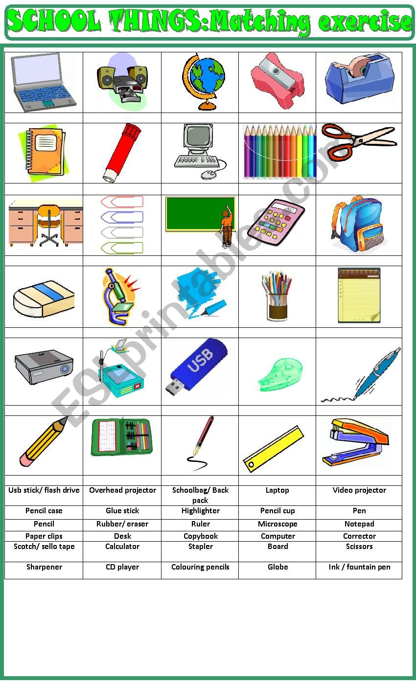 Here is the third part of my activities to revise school objects. If yoou take off the bottom part part you can use it as a test as well. Enjoy and good week:)