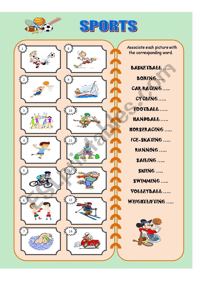 SPORTS AND ACTIVITIES - MATCHING EXERCISE (B&W VERSION INCLUDED)