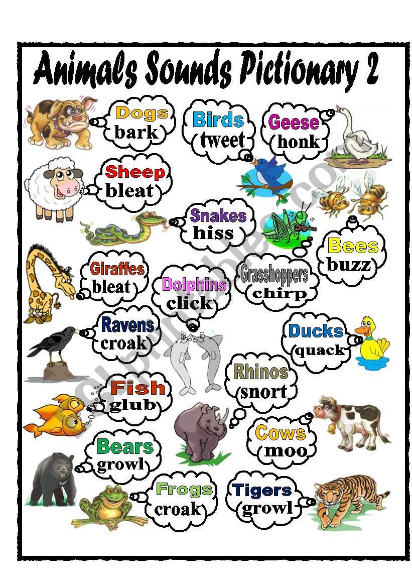 This is the second part of the animals pictionary. It has pictures and names of animals and the names of sounds they make. Grey scale version in included. I hope you like it.