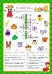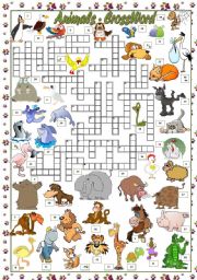 CROSSWORD WITH ANIMAL PICTURES (answer key included)