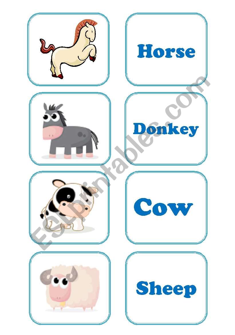 This is a very simple but useful memory game about farm animals, you can find : horse, donkey, sheep, cow, rooster, hen, chiken, cat, dog,duck, bull, pig.