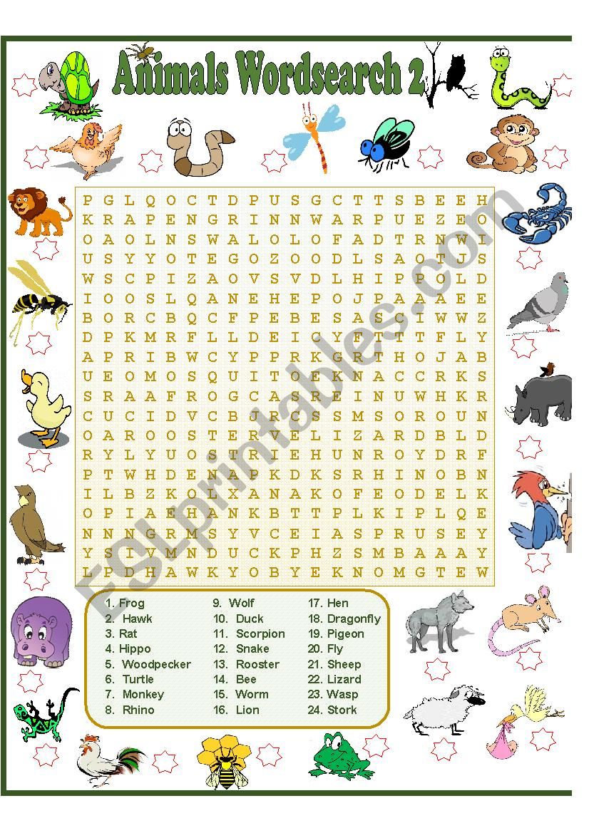 ANIMALS WORDSEARCH 2 WITH ANSWER KEY. HAVE A NICE DAY! :)