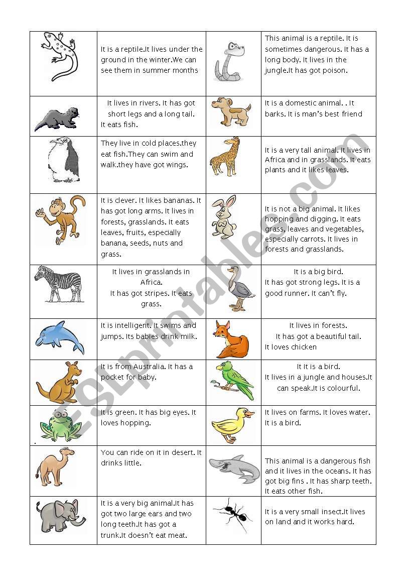 Vocabulary worksheets > The animals > Describing animals > Animals and their easy descriptions