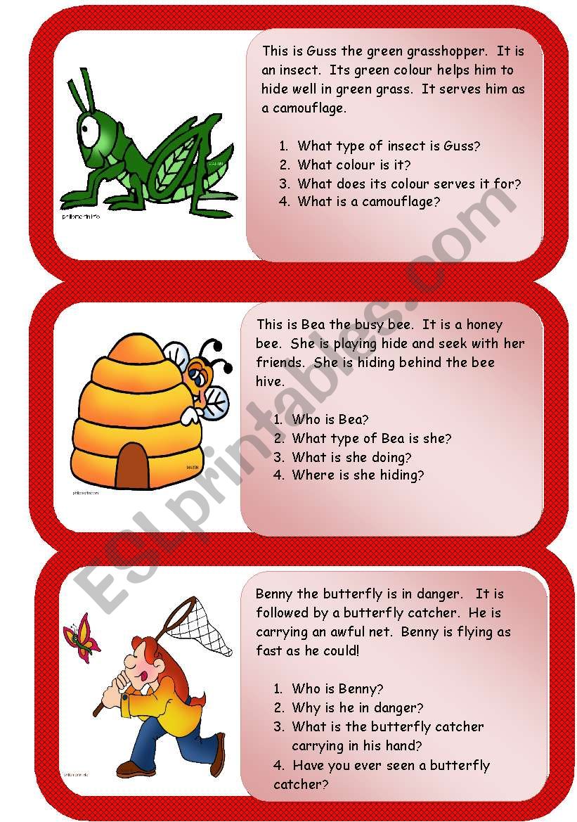 Vocabulary worksheets > The animals > Insects > insects - mini comprehensions