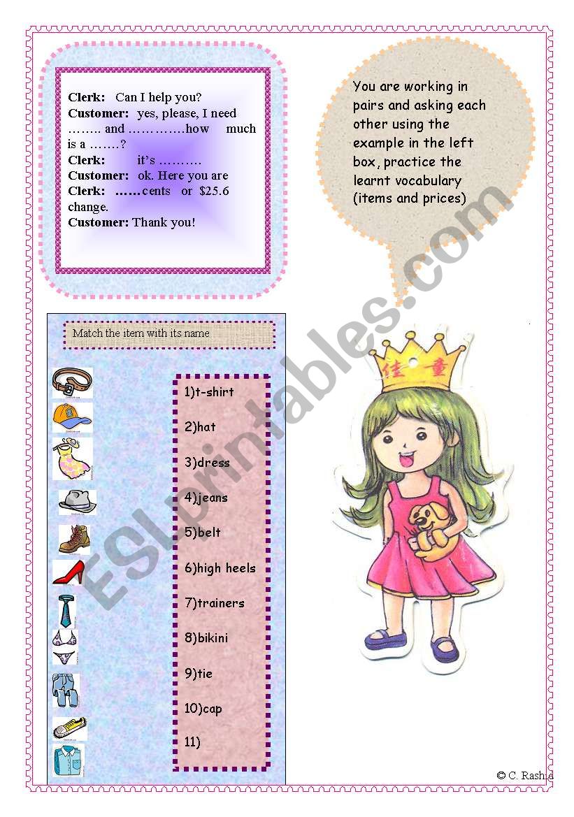 There are two activities, one is to match the vocabulary I taught and then role playing, customer and clerk, I always design or adapt speaking activities because I teach a group of beginners/adults.