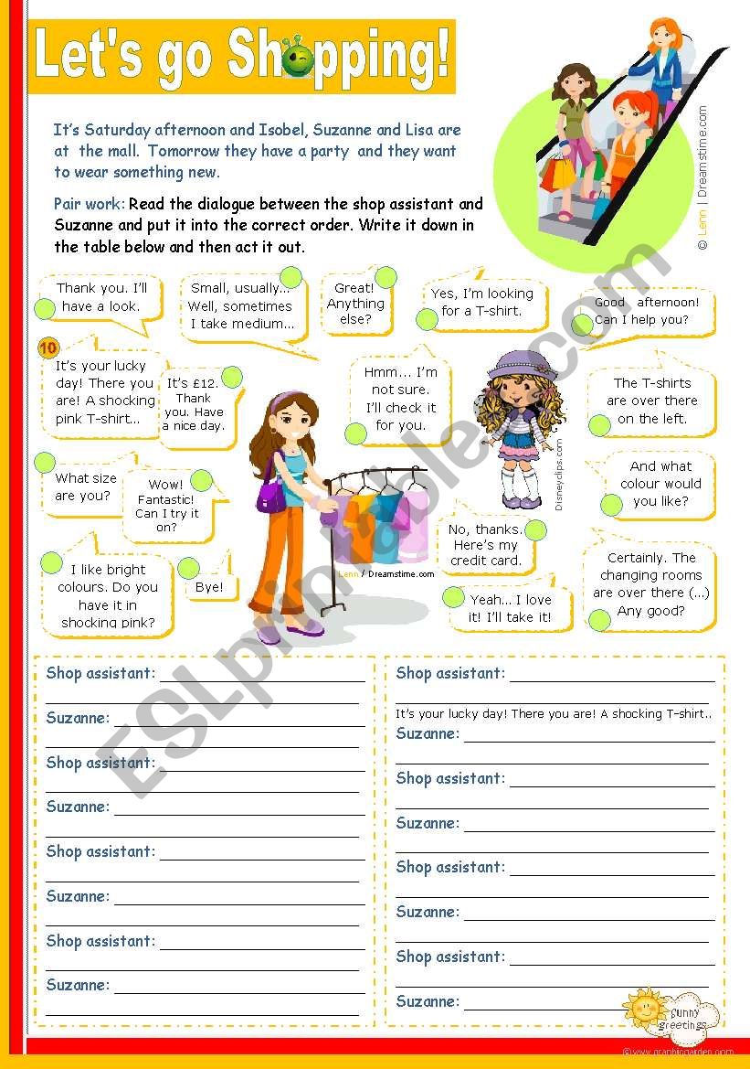 "Let´s go Shopping!" - Reading + Writing + Speaking activity for Upper elementary and Intermediate students worksheet