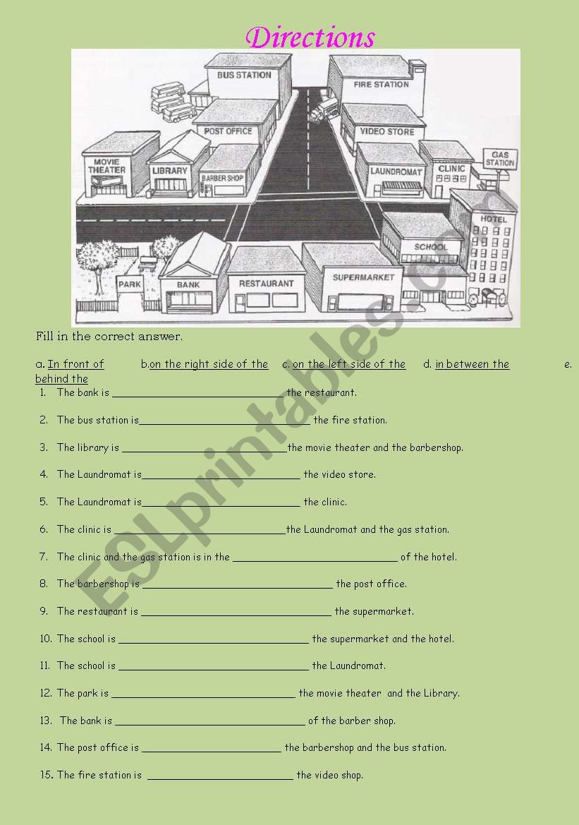 PLACES IN TOWN (MAP) TELLING THE DIRECTIONS worksheet