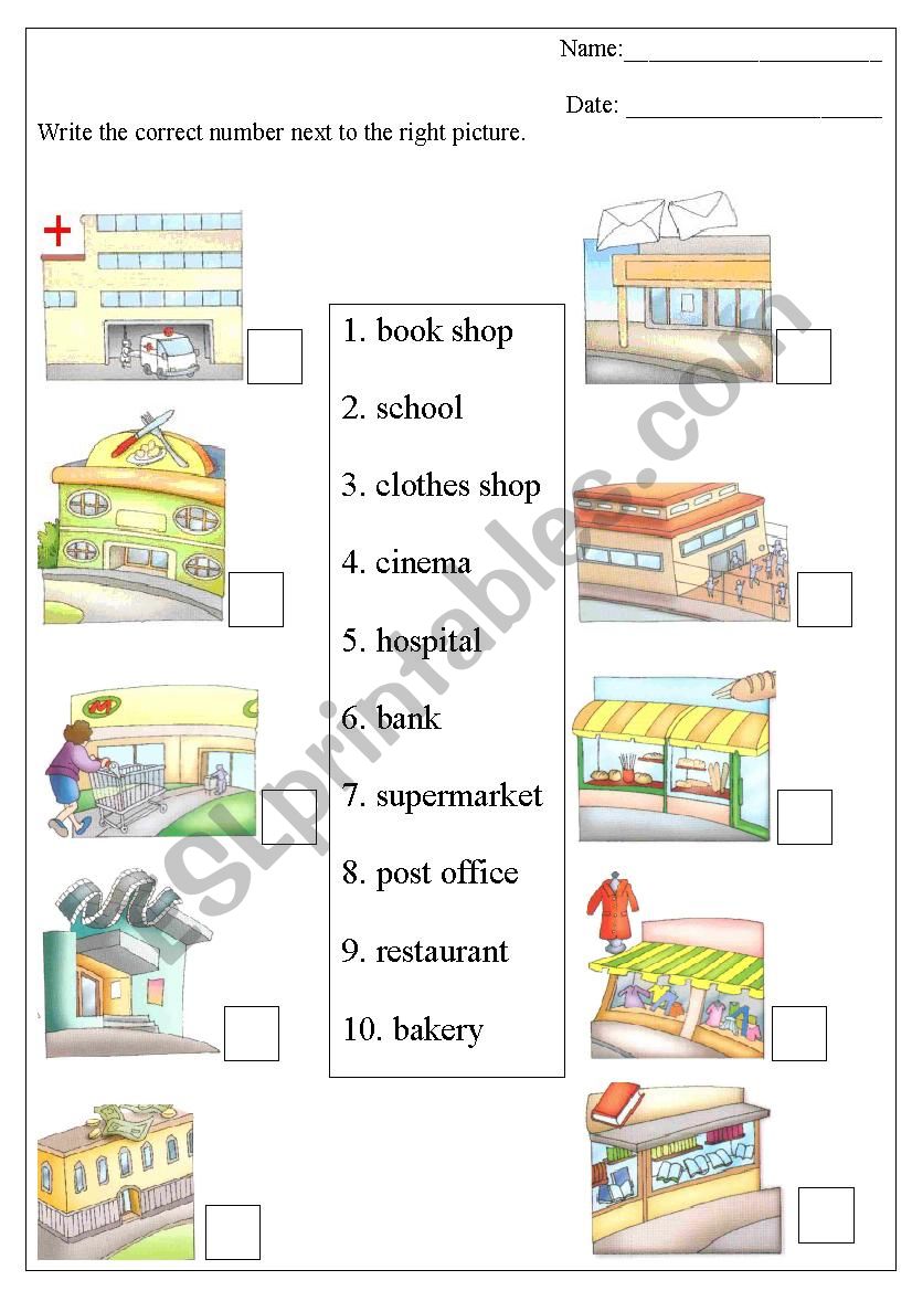 places in the town worksheet