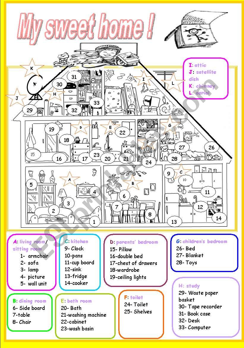 Vocabulary worksheets > The house > At home > my sweet home (1/3)