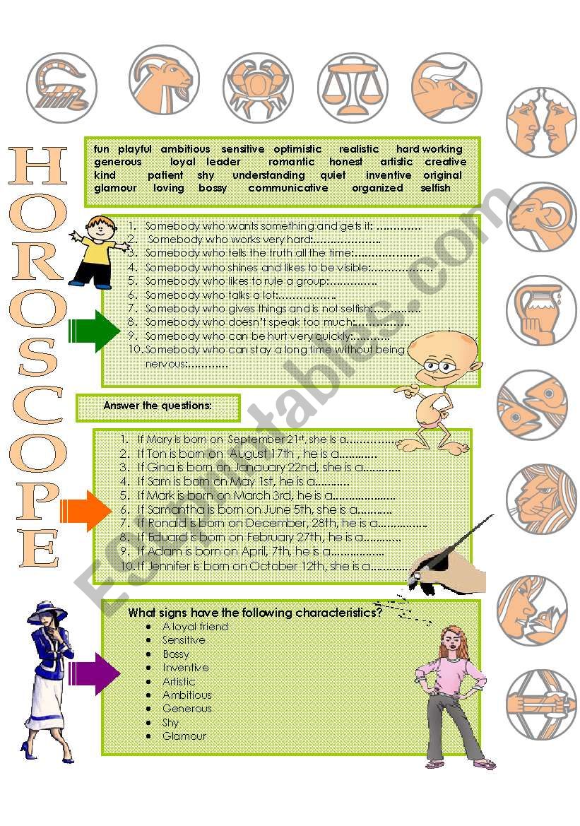 Vocabulary worksheets > Time > Horoscope > HOROSCOPE 2 of 2 (practice)