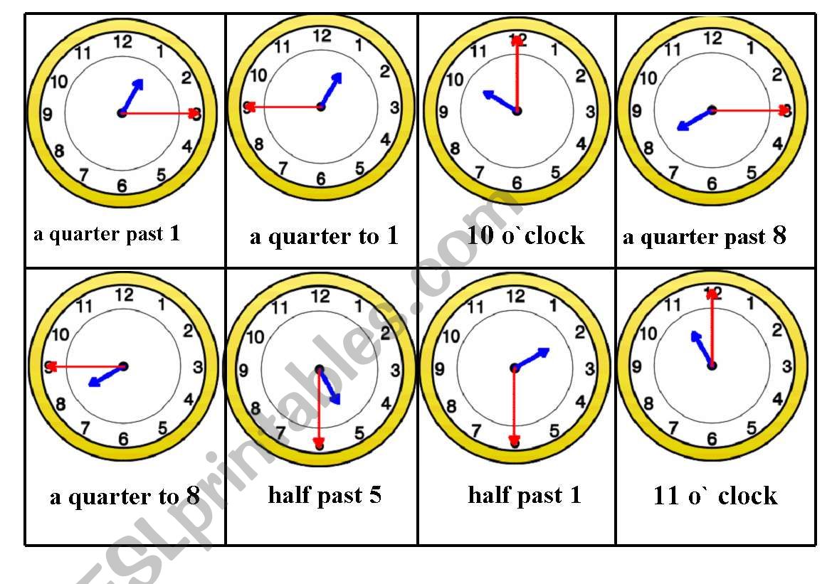 Vocabulary focus : o` clock, half past, quarter past and quarter to