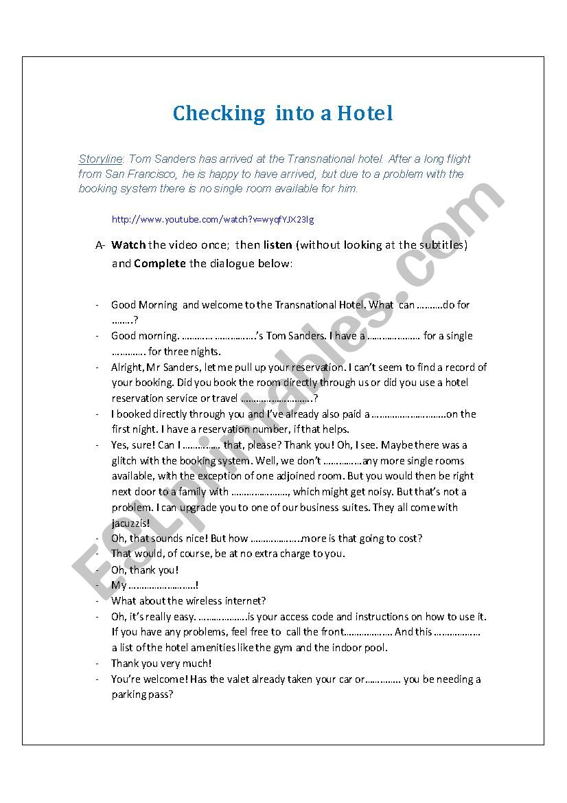 AT THE HOTEL Level: intermediate Age: 12-17 Downloads: 2495