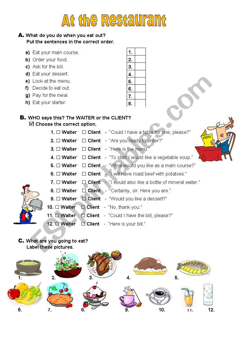 * * *  AT THE RESTAURANT  * * *  - exercises