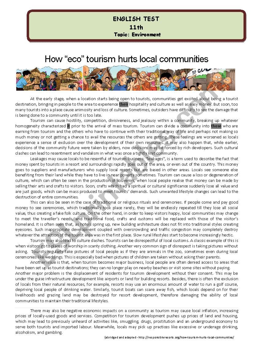 Test - How "eco"tourism hurts local communities worksheet