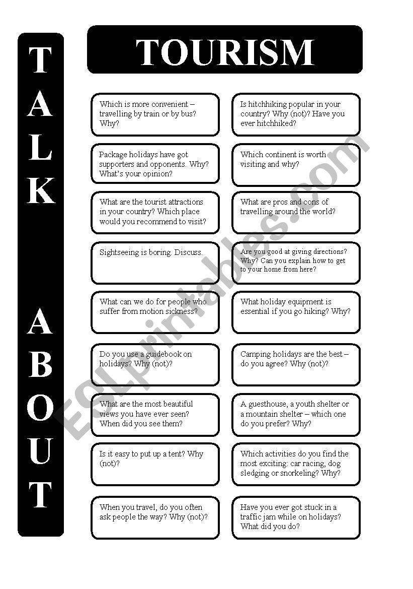 Vocabulary worksheets > Travelling > tourism > Tourism - 18 conversation cards (editable)