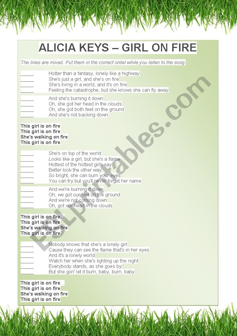 Sometimes kids want to enjoy listening to a popular song without having to write down the missing words etc. This version of the printable expects them only to listen to the song and put the lines in the correct order. This way, they still have to pay attention but they also have a chance to enjoy the song. Template by natasha shubina.