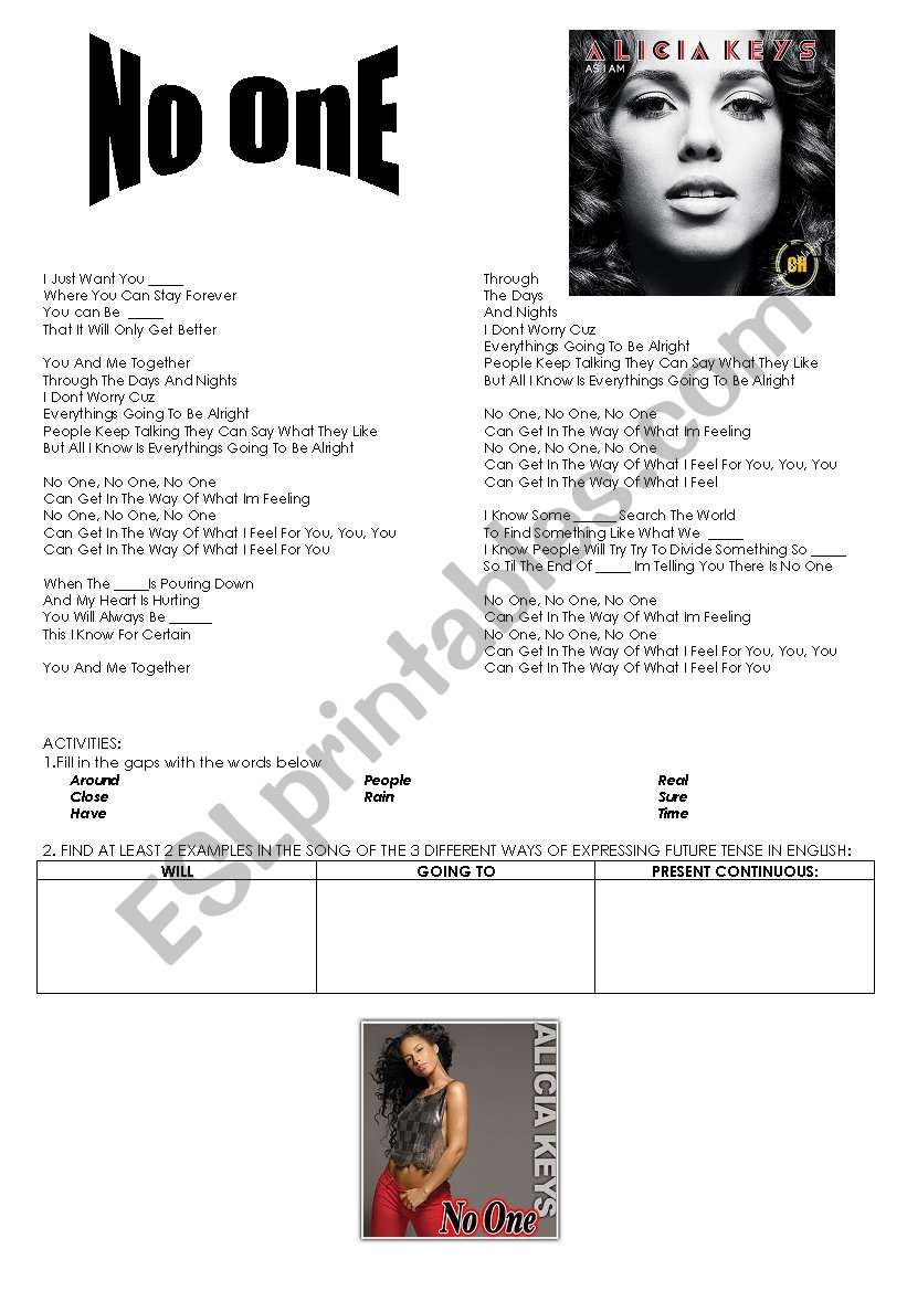 Worksheets with songs > Alicia Keys > song: No one Alicia Keys