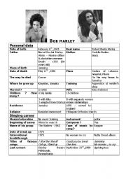 English Worksheet: Bob Marley biography