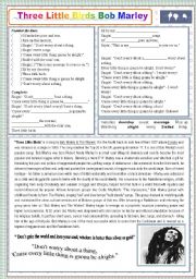 English Worksheet: THREE LITTLE BIRDS - BOB MARLEY - ONE PAGE