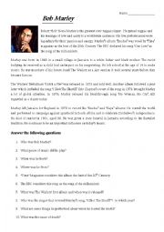 English Worksheet: Bob Marley Bio and Questions