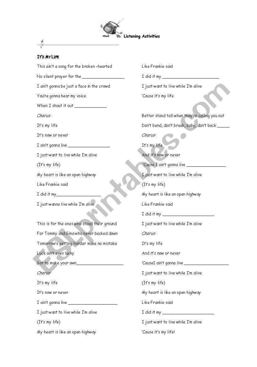 SONG WORKSHEET: IT´S MY LIFE BY BON JOVI