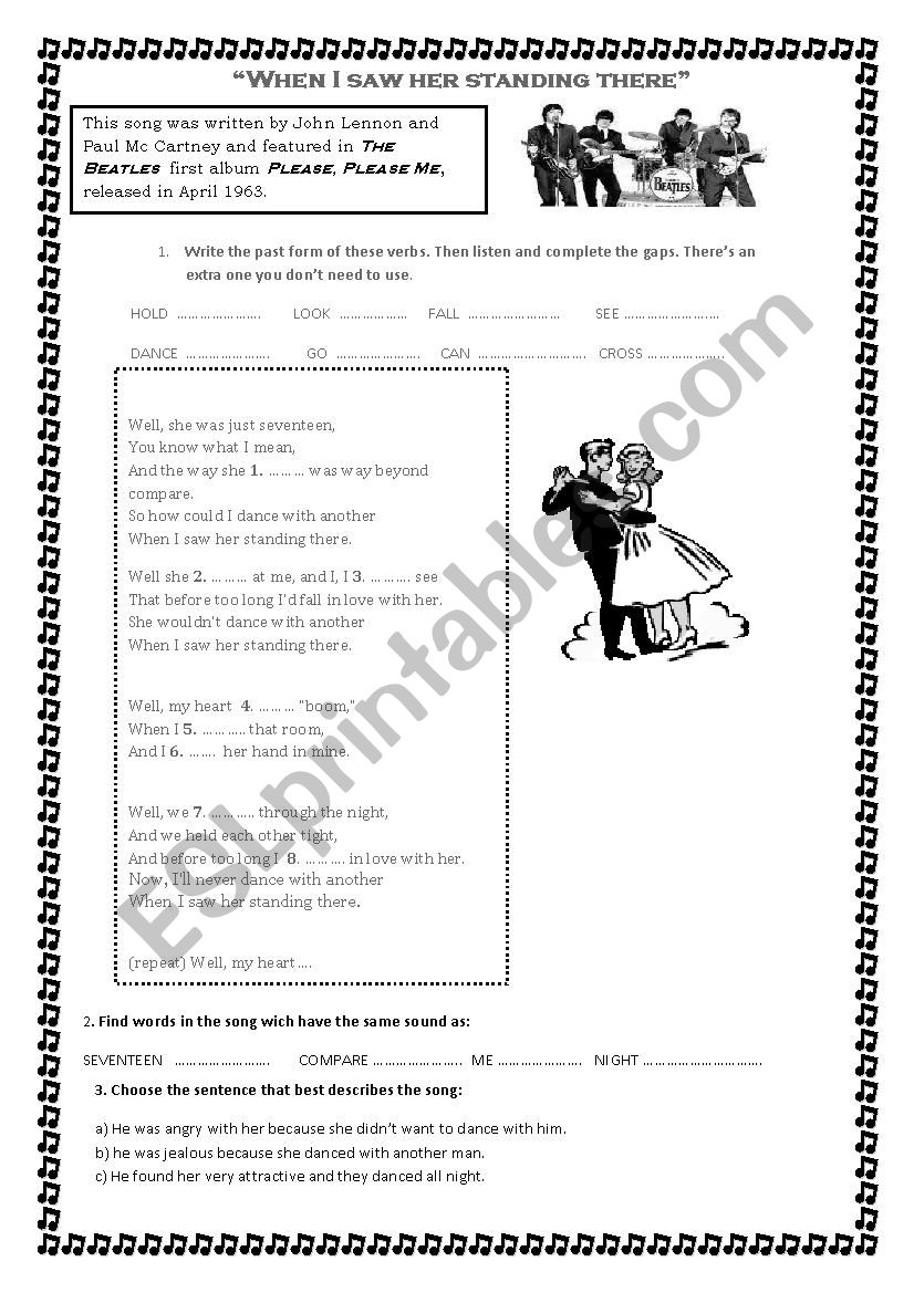 "When I saw her standin´ there" - The Beatles. Song - past simple worksheet