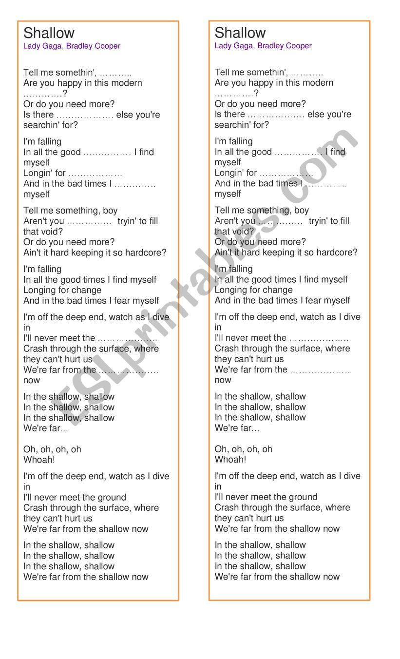 Worksheets with songs > Other songs > Shallow