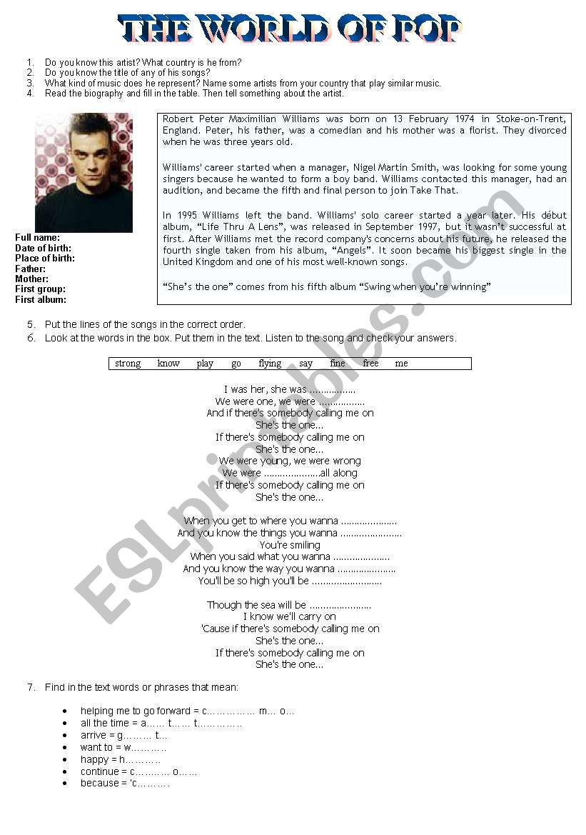 Worksheets with songs > Other songs > "She´s the one" Robbie Williams