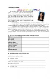 Selena Gomez worksheets
