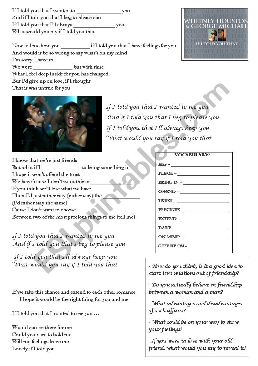 I´ve made this song worksheet to practice II conditionals and to reinforce it talking about being in love. So hope you´ll find time to check this, it´s fully editable.