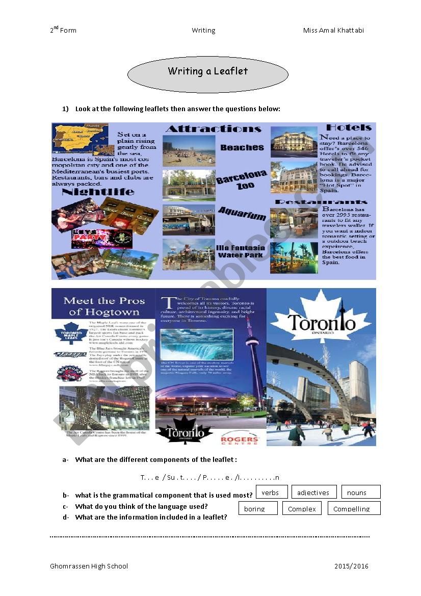 Writing worksheets > Other writing worksheets > writing a leaflet