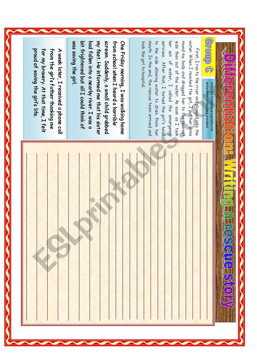 Writing a rescue story: Differentiated instruction worksheet